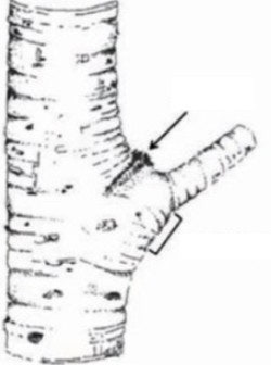 "이것은 가지치기를 할때 매우 중요한 부분으로 줄기와 가지의 분기점에 있는 주름살 모양이며, 줄기조직과 가지조직이 갈라지는 경계선이다."①지하고