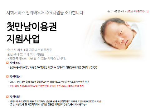 첫만남이용권이란 2022년부터 보건복지부 주도로 시행된 것으로 첫만남이용권이라는 바우처를 지급하여 출산시 아동양육에 따른 경제적 부담을 줄여주는데 목적이 있는데, 2024년 1월 1일부터 출생한 아동을 대상으로 첫만남이용권의 지급금액을 상향 조정한다는 소식이 들려왔습니다.정부에서는 저출산 고령화시대를 맞이하여 출산 대책으로 첫만남이용권이외에도 부모급여, 아동 양육수당 등을 지급하고, 지자체별 출산장려금도 지급하고 있으니 그렇지 않아도 양육에 지친 부모님들에게는 좋은 소식이 아닐수없겠습니다.