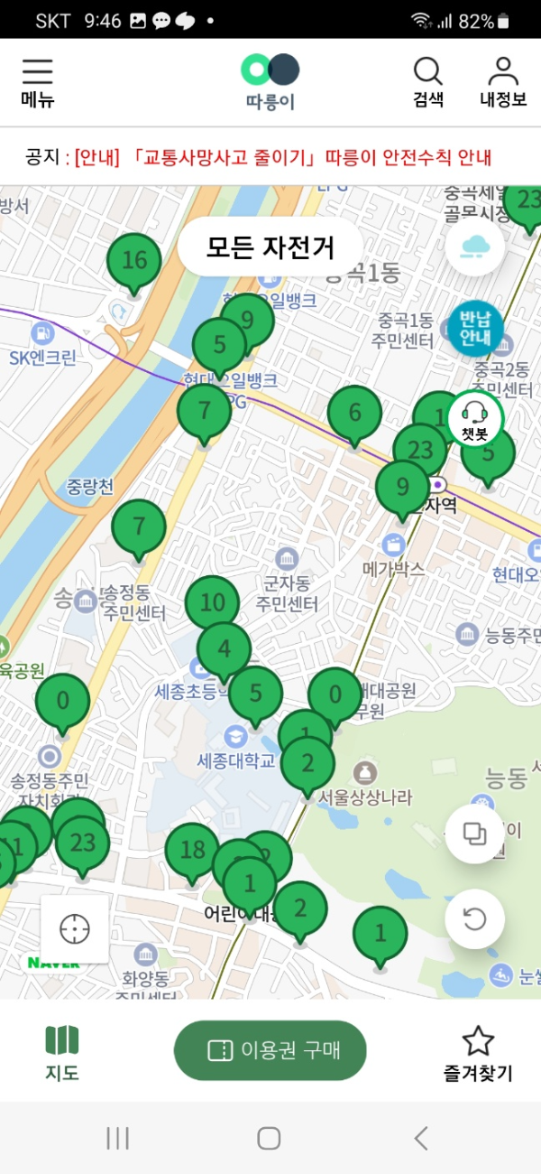 따릉이-대여소찾기-출처-서울자전거따릉이앱 주의사항