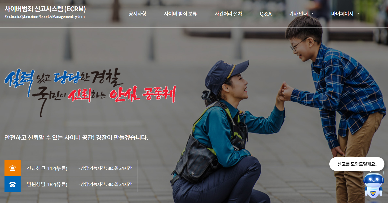 신고 조회 센터(바로가기) 관련 이미지 경찰청 사이버수사국