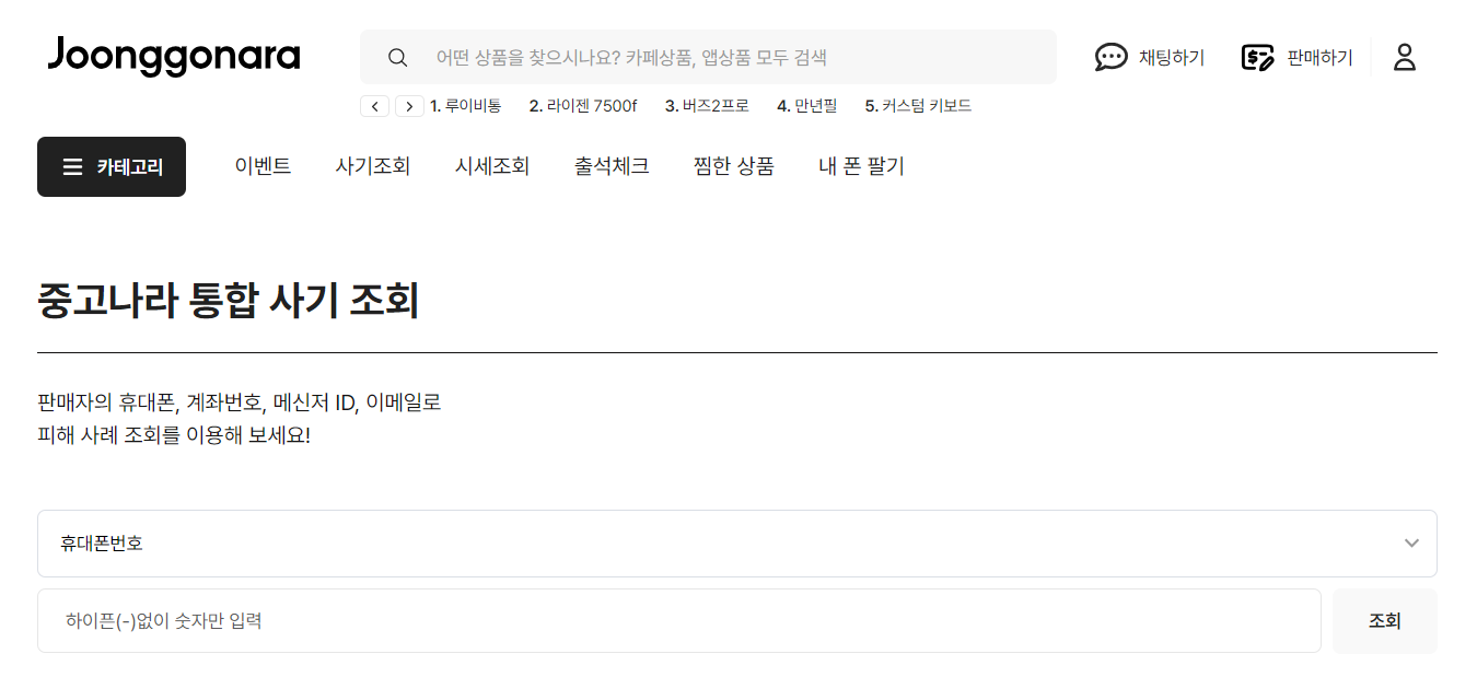 다른 사이트 판매 여부 및 과거 사기 이력 확인 가능더치트